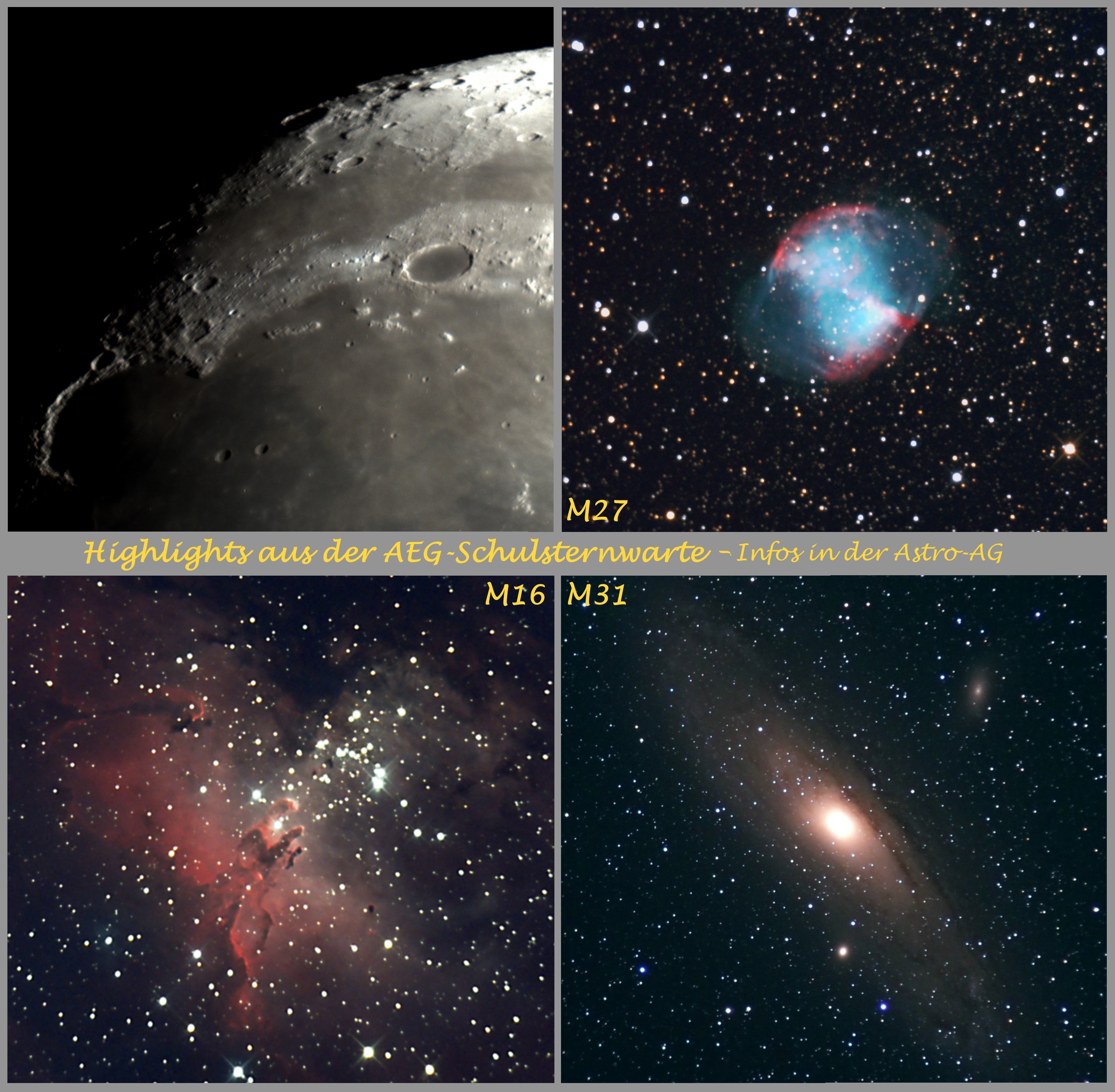 Eine Auswahl an Aufnahmen aus der Schulsternwarte sowie Materialien der Astronomie-AG.